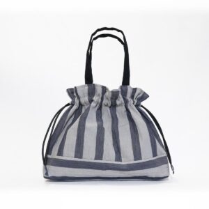 [IONO]小千谷縮布(おぢやちぢみふ) 巾着トート 雪縞 藍鼠色(あいねずいろ)13,200円(税込)