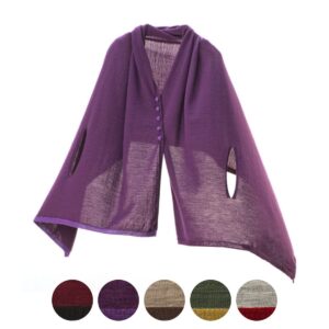 木の実のようなかわいいくるみボタン付きのニットポンチョ。前を留められるので両手が使えてとても便利です。おすすめは卒寿のイメージカラーの紫色(グレープ)やボルドー。minoシリーズの中でも一番の売れ筋で…
